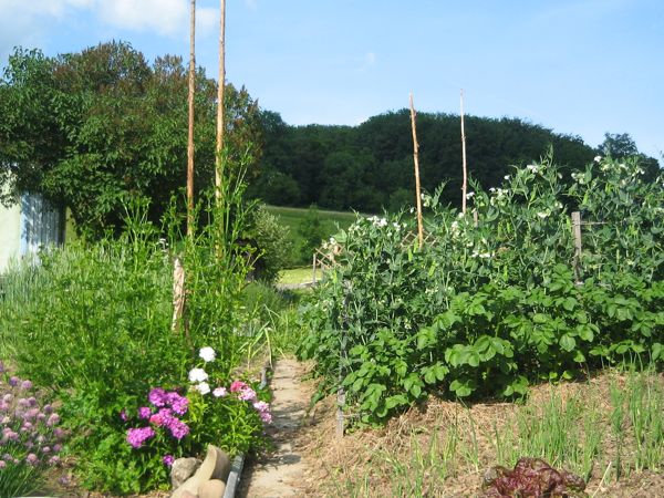 Unser Garten wurde aus Lust und Freude am Gärtnern angelegt. Ursprünglich darauf ausgerichtet, den Menüplan zu den gekauften Nahrungsmitteln hinzu mit eigenem Salat und anderem Gemüse zu bereichern, entwickelte er sich mit den Jahren mehr und mehr zum Selbstversorgergarten. Dies einerseits, weil die Begeisterung für die Gartenarbeit kontinuierlich zunahm, andererseits aber auch, weil die Qualität des selbstgezogenen Gemüses die der eingekauften Ware aus dem Supermarkt um Längen überragte. Dies machte sich nicht zuletzt im Essverhalten der Kinder bemerkbar: während sie gekauften Rosenkohl konsequent und nasenrümpfend links liegen liessen, verspeisten sie den selbstgezogenen mit Hochgenuss. Aber auch an uns Erwachsenen ging der Unterschied nicht unbemerkt vorüber: Wer einmal eine selbstgezogene Tomate mit einer hors-sol-produzierten verglich, weiss, wovon wir reden.