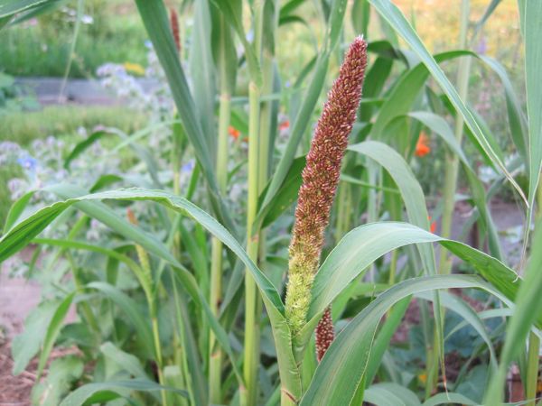 Die sehr standfeste Kolbenhirse ist aber in unseren Gärten leicht anzubauen. Da sie frostempfindlich ist, darf man sie erst nach den Eisheiligen in den Garten pflanzen, deshalb ziehen wir sie oft einzeln in kleinen Töpfchen vor. Im Abstand von ca. 20 cm ausgepflanzt wächst sie zu einer Höhe von etwa 120 cm, bevor sie sich aufgrund der Schwere der Kolben wieder der Erde zuneigt. Ist sie ausgereift, schneidet man die Halme ab und hängt sie gebündelt an einem geschützen Ort zum Nachtrockenen auf.
