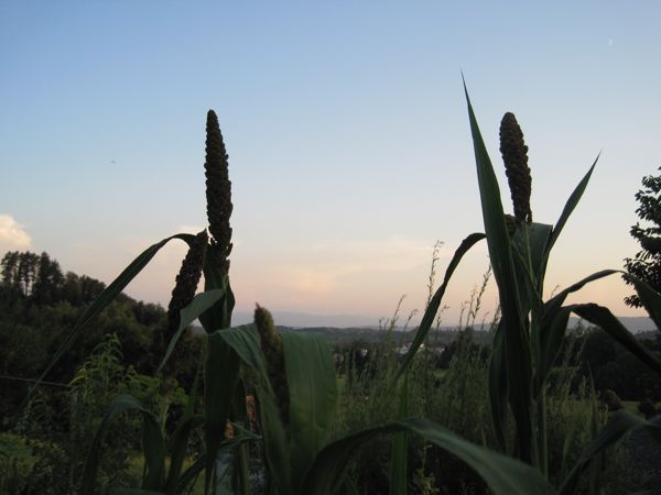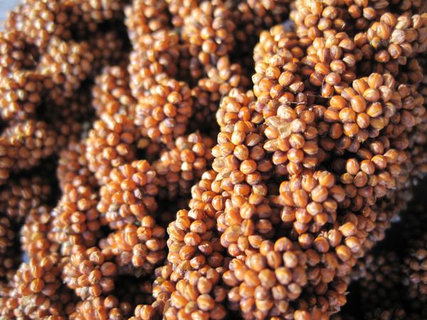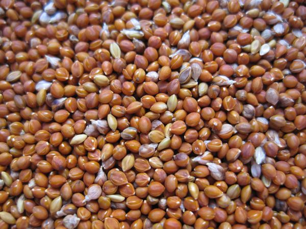 Wenn man sie als Hühnerfutter verwenden will, hängt man die ganzen Kolben ins Hühnergehege. Unsere Hühner sind ganz wild darauf und haben die Kolben innert kürzester Zeit ausgedroschen. Will man die Hirse aber selbst verzehren, muss man noch einiges an Arbeit reinstecken: Dreschen, reinigen, schälen und eventuell mahlen. Da wir nicht Unmengen Hirse anbauen, dreschen wir sie durch abrubbeln zwischen den Handflächen aus, zur Reinigung werden die Körner gesiebt und Verunreinigungen ausgeblasen. Da die kleinen Hirsekörner von harten Schalen umgeben sind, sollte man sie nun noch schälen. Es ist zwar möglich, ungeschälte Hirse zu mahlen, man kann das Mehl auch in der Küche verwenden (z. B. in Pfannkuchen), aber ein kulinarisches Highlight ist das nicht.