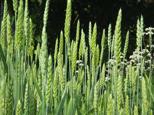 Der Weizen hat sich vom nahen Osten aus über die ganze Welt verbreitet und ist heute nach Mais und Reis das dritthäufigst angebaute Getreide der Welt. Auch Dinkel, Emmer, Einkorn und Hartweizen sind Weizenarten. Die Winterweizensorte, die in unserem Garten wächst, gehört zu den Weichweizen. Ursprünglich stammt sie aus einem Pack gekauften Bioweizens, weswegen wir die genaue Sortenbezeichnung nicht kennen.