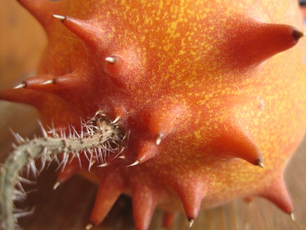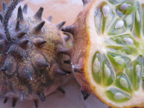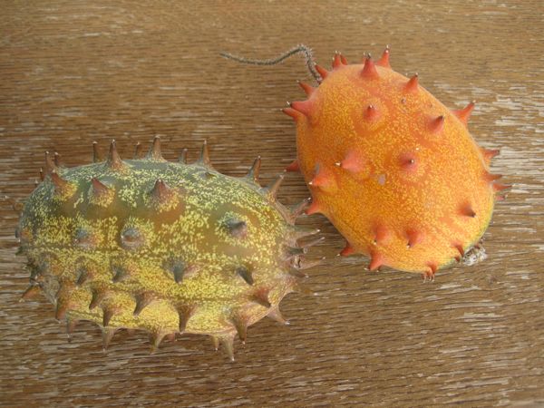 Die Kiwano, auch Zackengurke oder Horngurke genannt, stammt ursprünglich aus Afrika südlich der Sahara. Sie ist sehr wärmeliebend und bringt in unseren Breitengraden im Gewächshaus oder Folientunnel die besten Erträge. Aber auch im Freiland ist eine - wenn auch geringere - Ernte möglich.